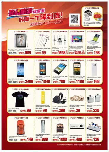 版本二:传单正面是买50送50的优惠信息,二维码是去到应用市场;反面是传统的超优惠爆款陈列。