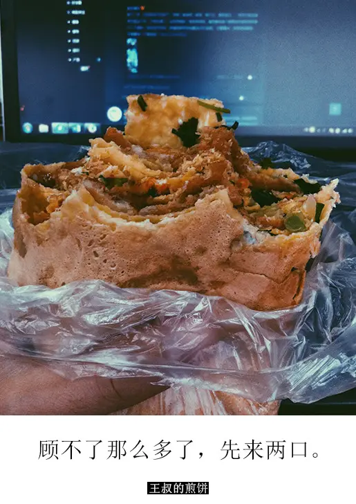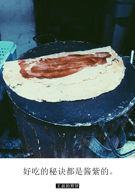 说了给王叔家的煎饼做广告呢,你若有闲情逸致,不妨一早去上海普陀区澳门路中华创意园楼下来上一套,口重的也尽管任性一把。去了尽管报我的名,估计王叔也不会给你多加蛋的。