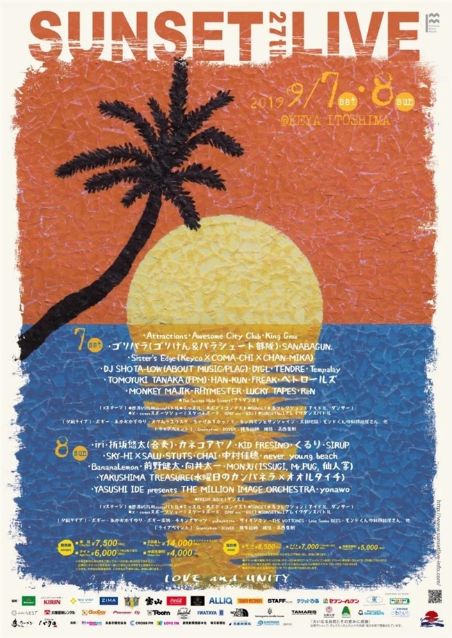 海报以日落、棕榈树为核心视觉元素,营造出海滨落日的浪漫氛围,丰富的演出阵容信息排列其中,“LOVE and UNITY” 的主题传递出音乐带来的爱与联结。这种充满夏日风情与温情内核的设计,精准契合了年轻人对浪漫、自由音乐现场的向往,让音乐节成为夏日里一场关于爱与音乐的美好邂逅。