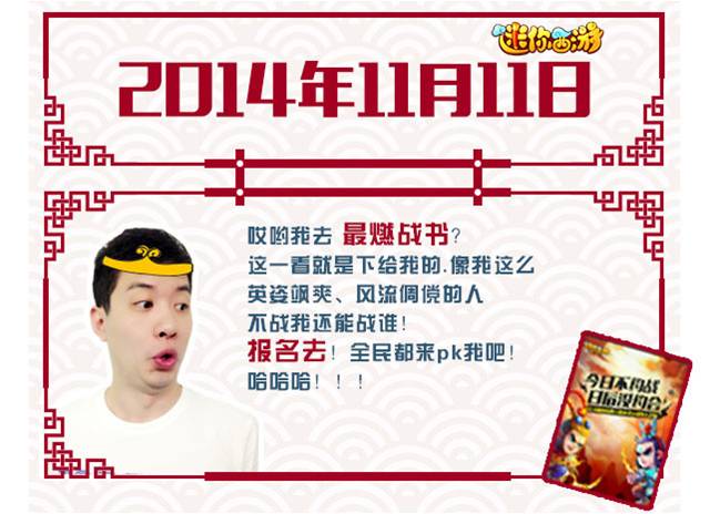 运用微信H5形式,隆重推出“最燃战书”这个令人热血沸腾的视频亮点。在光棍节档期,用充满挑衅感的风趣语言激起参与者观看视频的兴趣,通过引导分享来激发二次传播,紧接着放出视频内容和pk赛介绍来引发大家对全民pk赛的关注。