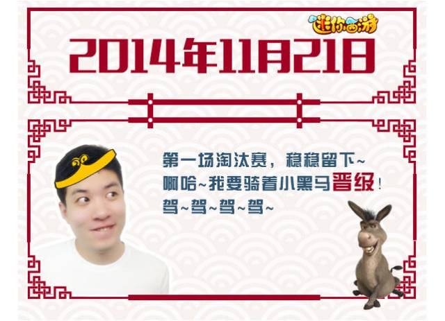 通过真人的夸张版表情,来表现一个玩家参赛的心路历程:从参加pk赛之前的忐忑到全身心投入比赛时的决心,令读者感同身受,从而侧面烘托出pk赛的如火如荼。在决赛即将开幕之际,令各位玩家全情期待。