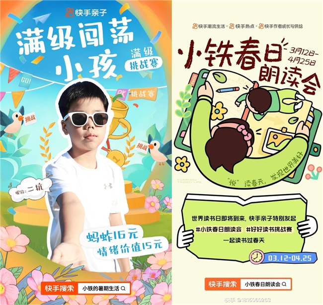 庞大且精准的用户储备,为内容转化提供了优质土壤。快手平台聚集了各年龄段关注亲子教育的宝爸宝妈,他们对亲子内容的高关注度与强互动性,让IP内容具备天然的传播优势。上半年备受瞩目的16岁创作者@阿好好好,凭借朗诵《红楼梦》《我与地坛》等名著17天涨粉百万,一周内26次登上快手热榜。快手亲子发起#小铁春日朗顿会 ,掀起站内语文热潮;而唐山“小孩哥”二杭通过卖蚂蚱时的趣味吉祥话走红,展现了快手用户对“孩子多实践”的教育理念认可。这些案例背后,是平台用户对“真实、温暖、有价值”内容的共同追求。