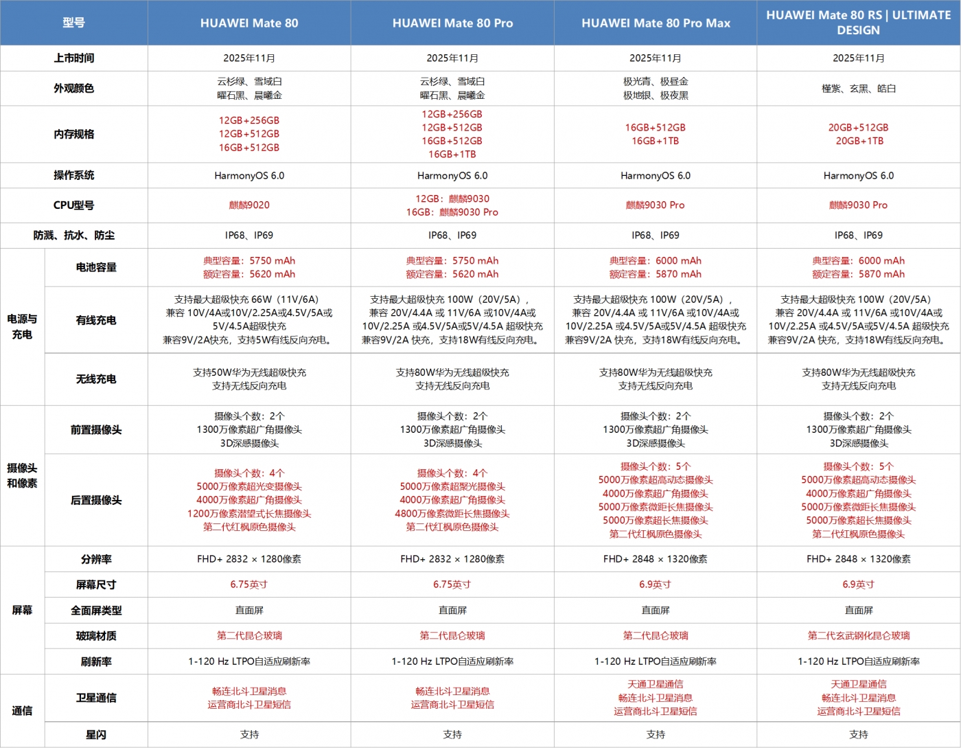 ▼ 华为Mate 80系列配置参数,来自微博@数码闲聊站