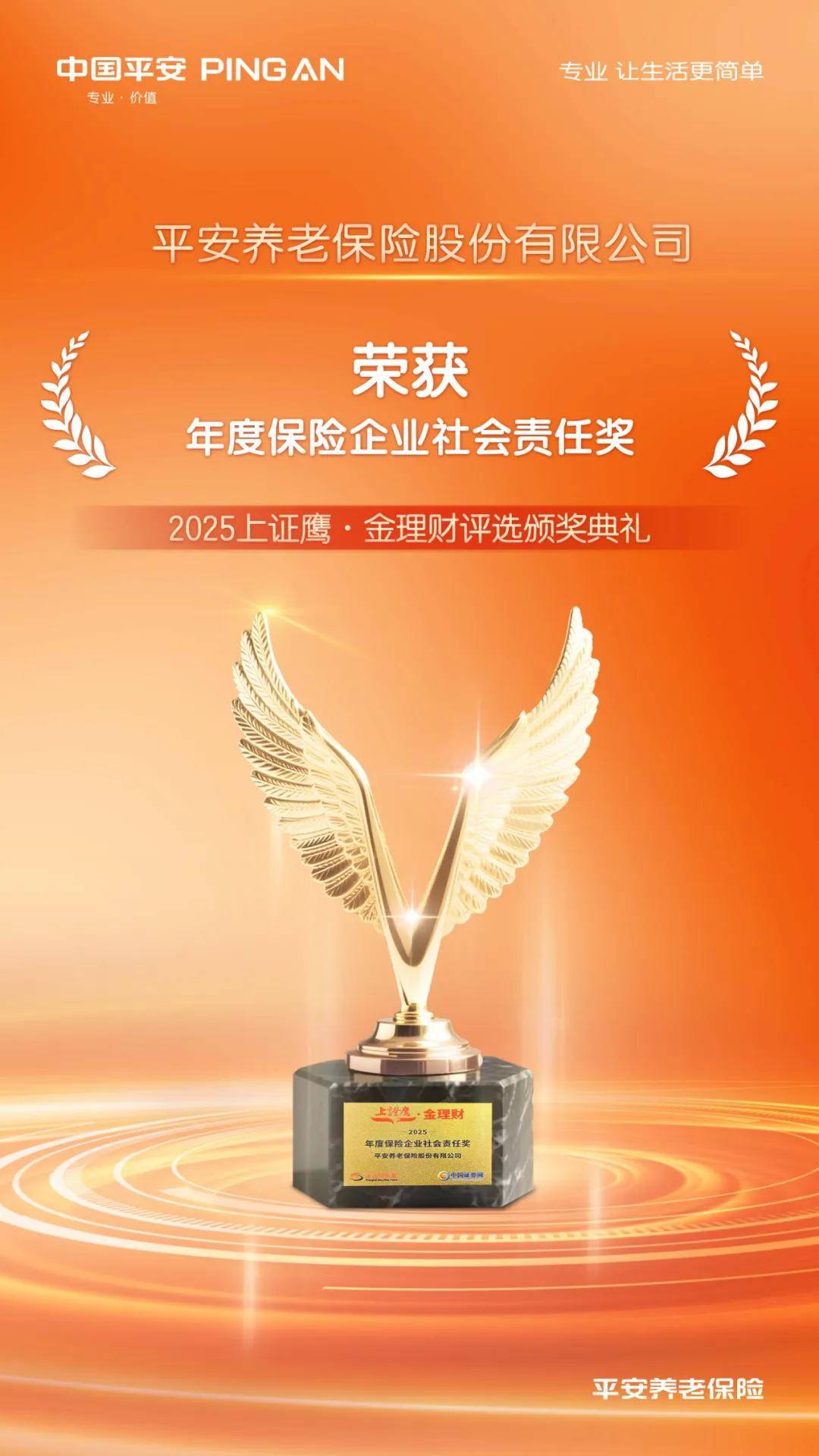 12月12日,“2025上证·大虹桥金融高质量发展大会暨2025上证鹰·金理财评选颁奖典礼”在上海举办,凭借在企业社会责任领域的卓越实践,平安养老险荣获“上证鹰·金理财”年度保险企业社会责任奖,体现了其以消费者为中心、以员工发展为根基、以社会公益为使命的全方位责任担当。