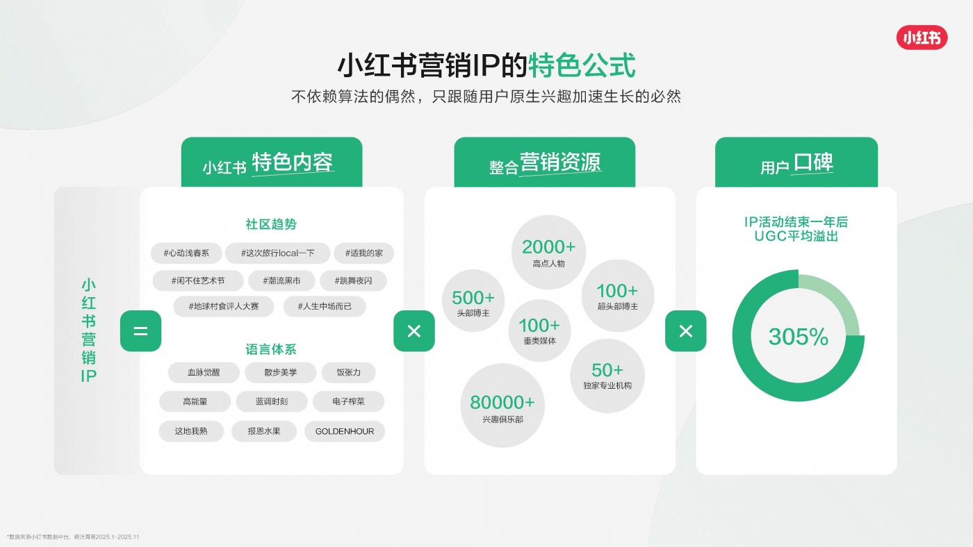 小红书营销IP特色公式 = 特色内容*整合营销资源*用户口碑