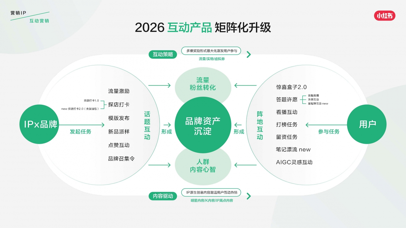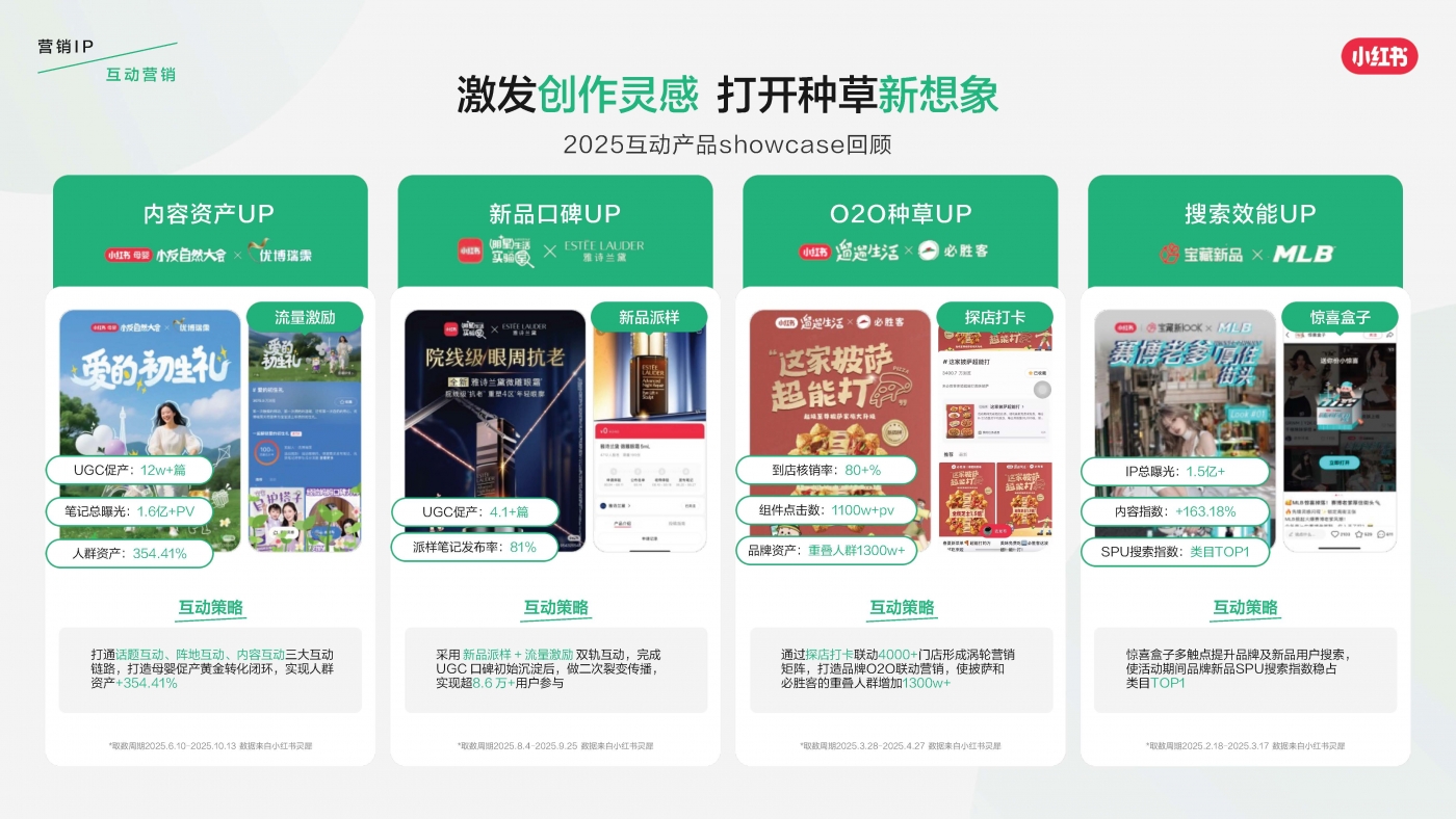 互动营销的核心都是通过某种激励机制——发笔记获流量激励、免费新品派样、发券引导线下探店打卡、搜索特定关键词掉落“惊喜盒子”触发奖励等,吸引用户互动。