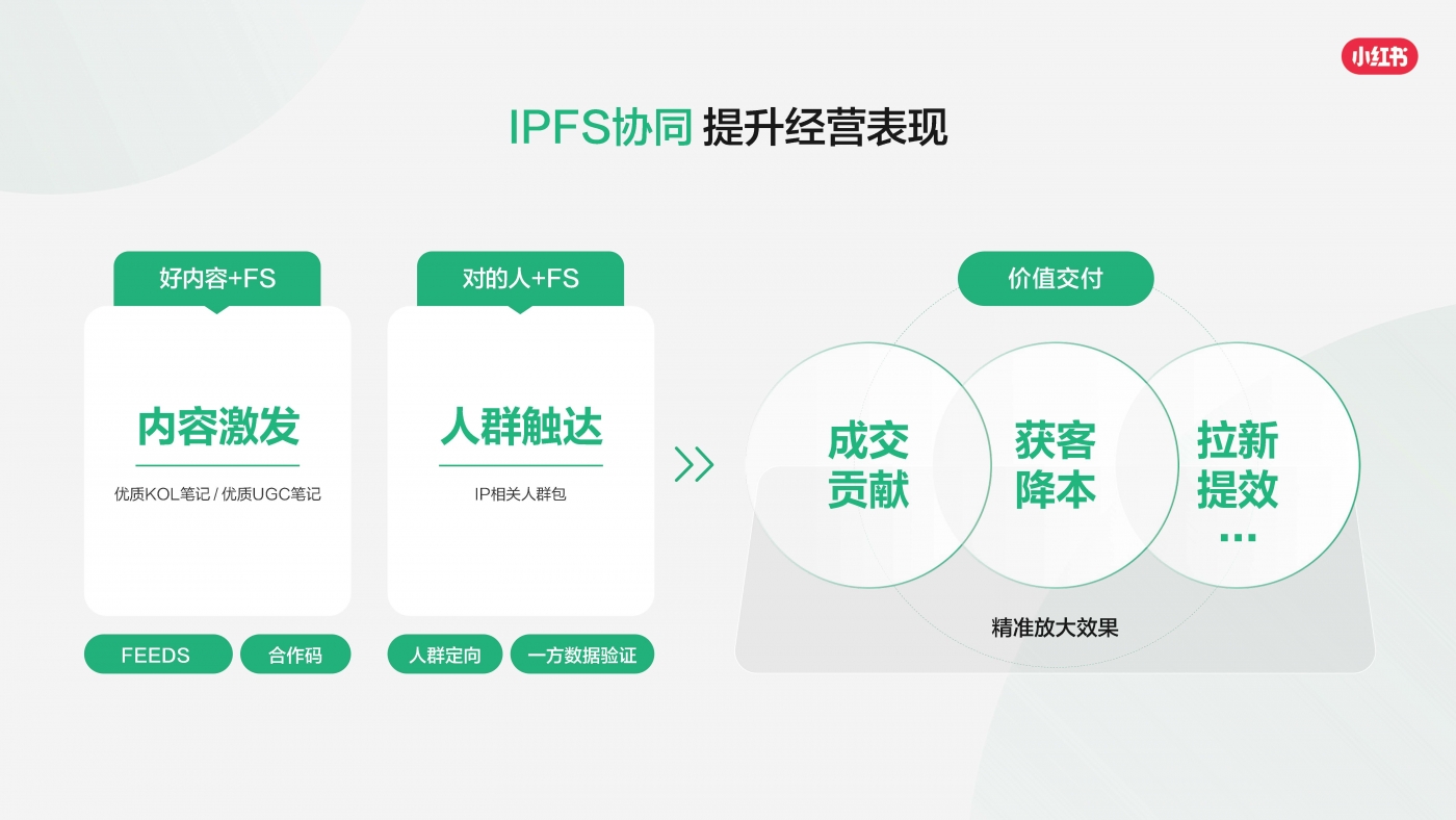 与用户口碑相关,去年小红书提出了“IPFS”方法论。这个很像某种mbti人格的单词,是IP+小红书营销方法论KFS的组合。通俗讲,就是鼓励品牌在IP营销合作结束后继续投放,包括