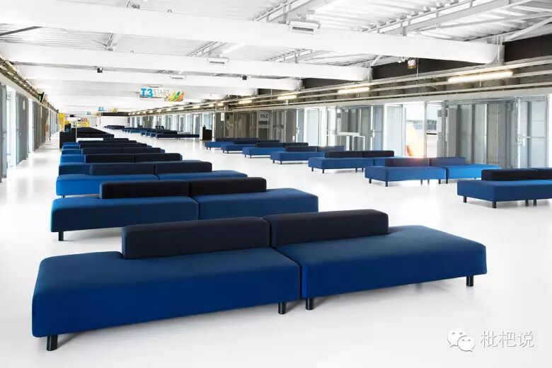 内饰体验方面,这座廉价航空港却并不“廉价”。良品计画公司为此专门设计制造了 400 张以绿色、蓝色、棕色以及白色为主题色调的舒适沙发凳,即便不去各个航空公司的 VIP 俱乐部,你也能够享受到简单舒适的候机体验,据称整个沙发凳的设计完全参照 MUJI 床垫的舒适标准来制造。