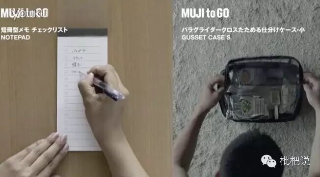 这支视频以从右到左的卷轴式展开,一男一女两个角色以不同身份事无巨细地将出门在外的整个流程走了一遍,当然在进行每个动作时 MUJI 都会标注产品名称。而这其中的意义也是双向的。MUJI 可以帮你应付旅行中的每一个场合,你的旅行也就少不了 MUJI。