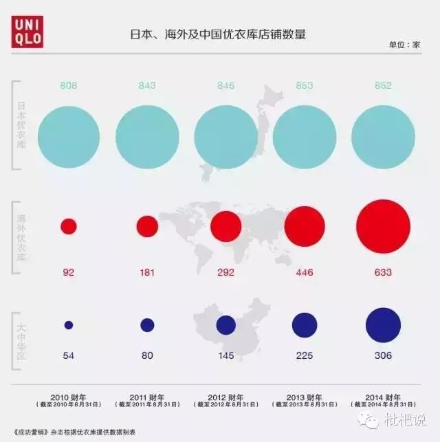 ——日本、海外及中国优衣库店铺数量