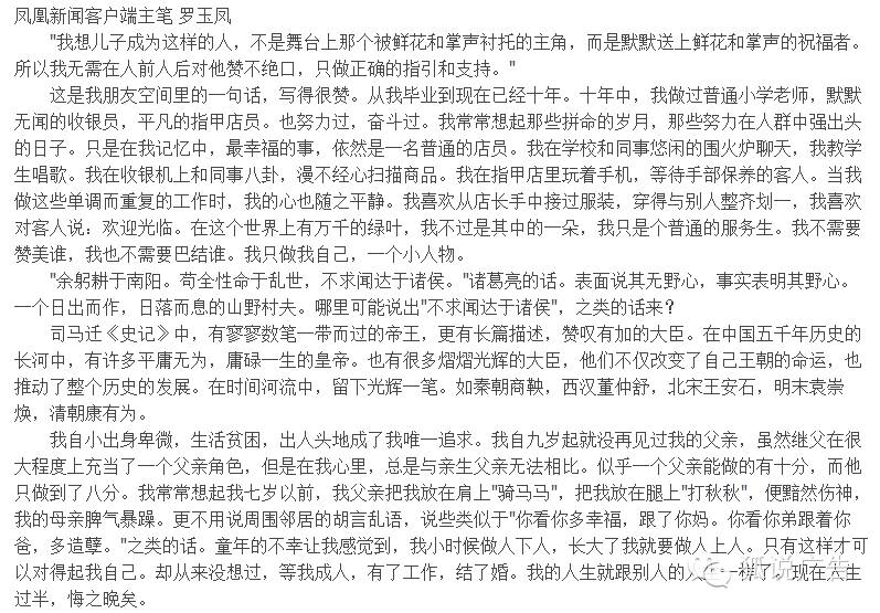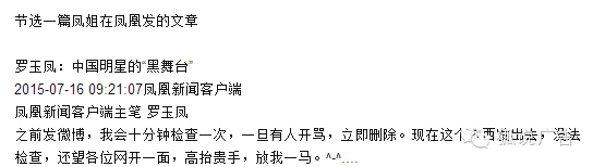 我们再看凤姐七月份被凤凰签为主笔后的第一篇文章开头