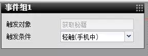 由于获取秘籍的按钮同时触发多个相同的事件,可以直接为该对象添加事件组,触发条件为”轻触“