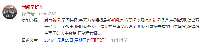 比如“新闻早班车”这个公众号,一看这个名字,应该有点理解能力的人都知道它是干嘛的吧。为受众提供每天的早间新闻,就是它最大的功能,它的命名完全基于这个特点。