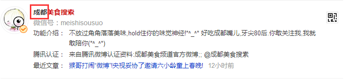 比如“成都美食搜索”这个公众号,就是典型的利用地区精准命名的例子,它专注于成都这个地方的美食,定位非常明确,受众也非常精准,这样的命名不失为一种好方式。