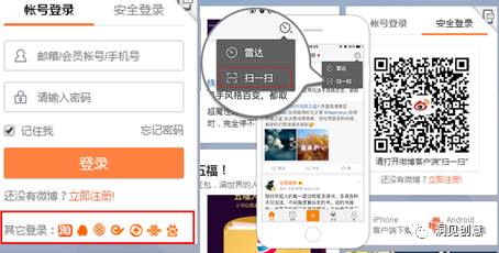 很多人可能登录某些APP或者网站都会发现,如果你没有注册帐号,但是注册帐号时又需要填写资料占用很多时间,这样又会流失一部分的潜在用户,于是,出现了很多第二登录方式,就是我们看到的“其他登录“”扫一扫登录“,还有类似”一键登录“等,都是尽可能的为用户提高便利性。