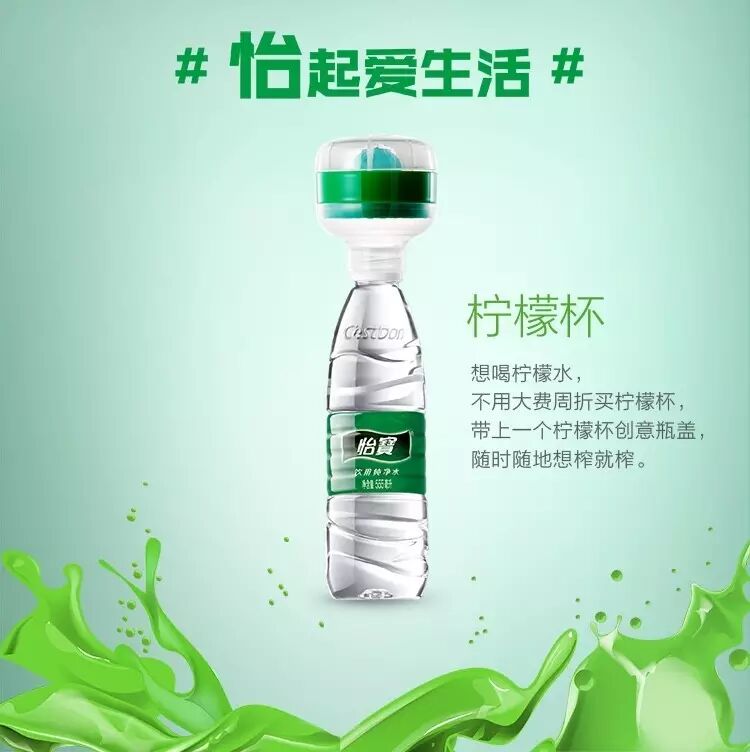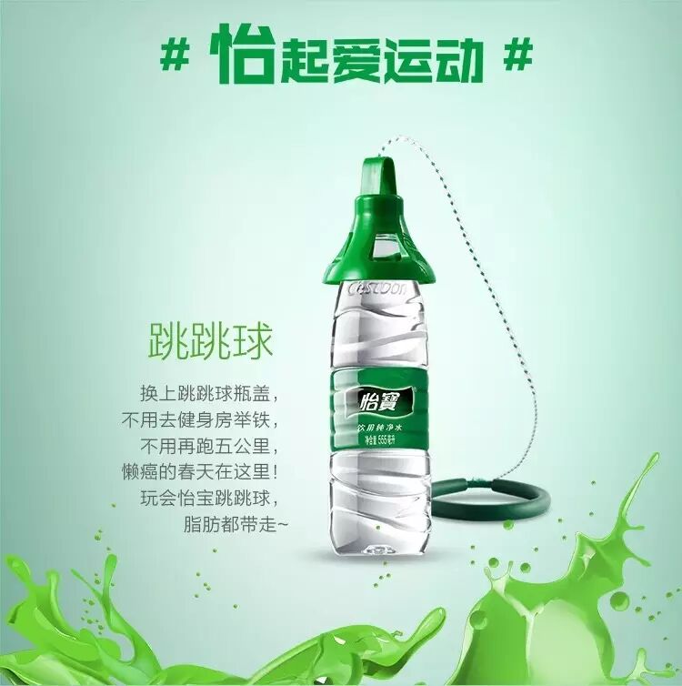 想要让怡宝的广告留存在更多人的心里,最好的办法就是让怡宝的广告留存在更多人的生活里,基于这样的想法我们给怡宝设计制作了10种瓶盖,让消费者喝完饮料以后依然可以把瓶子和瓶盖留在身边。