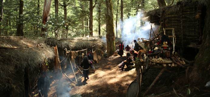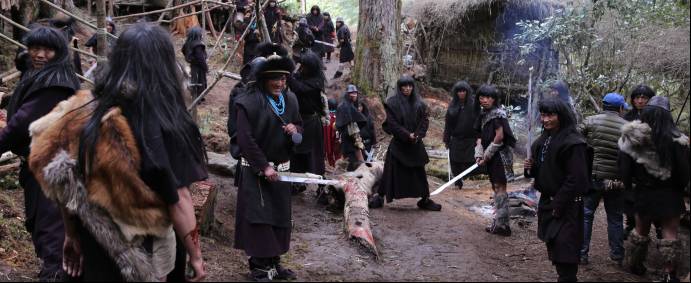 剧组搭建的珞巴族博嘎尔村落,再现部落生活。