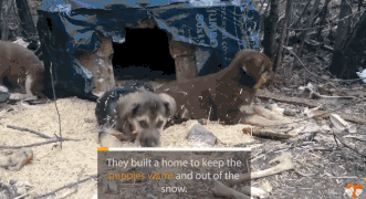 这样的温暖举动也感染了更多的人,他们有的在雪地里为狗狗盖小房子。