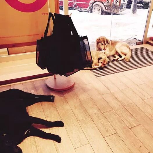 其实不止宜家对流浪狗敞开了大门,还有很多商家也会这么做。虽然没有宜家这么大的地方让它们闲逛,但是一个能遮挡风雨的地方,和一个吃饱喝足还暖和的冬天,都不会少。
