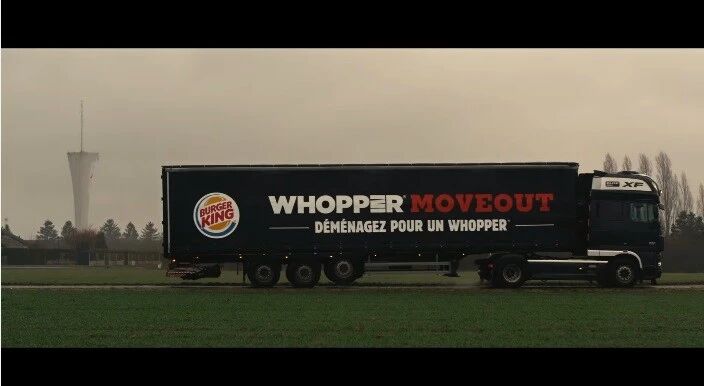 最成功的案例,17年美国汉堡王用真实的店铺起火照片做宣传海报。