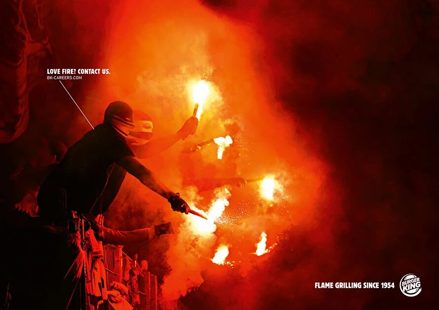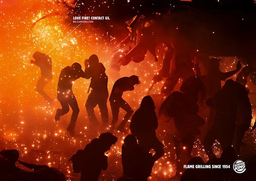 把招聘广告也做得跟火搭边的也就汉堡王一家了,喜欢玩火吗?那就来汉堡王吧~