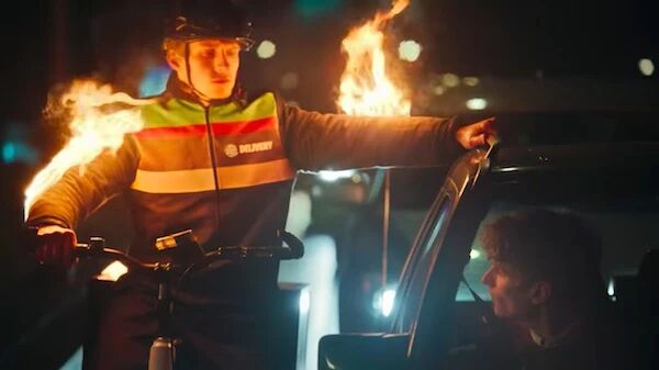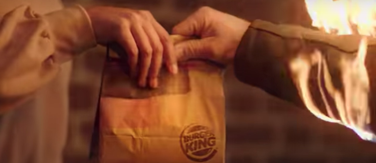 2017年德国汉堡王的案例。当你接到一份燃烧的外卖是什么感觉?汉堡王直火烧烤外卖直接给你送到家。