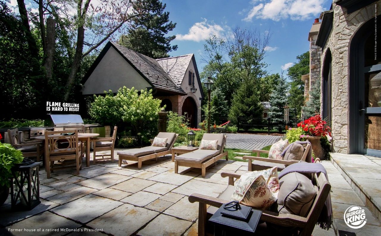 今年美国汉堡王battle麦当劳的姿势是,跑到麦当劳高管以前居住过的私宅,拍摄了一组照片。重点是这些高管都拥有一个烧烤露台。