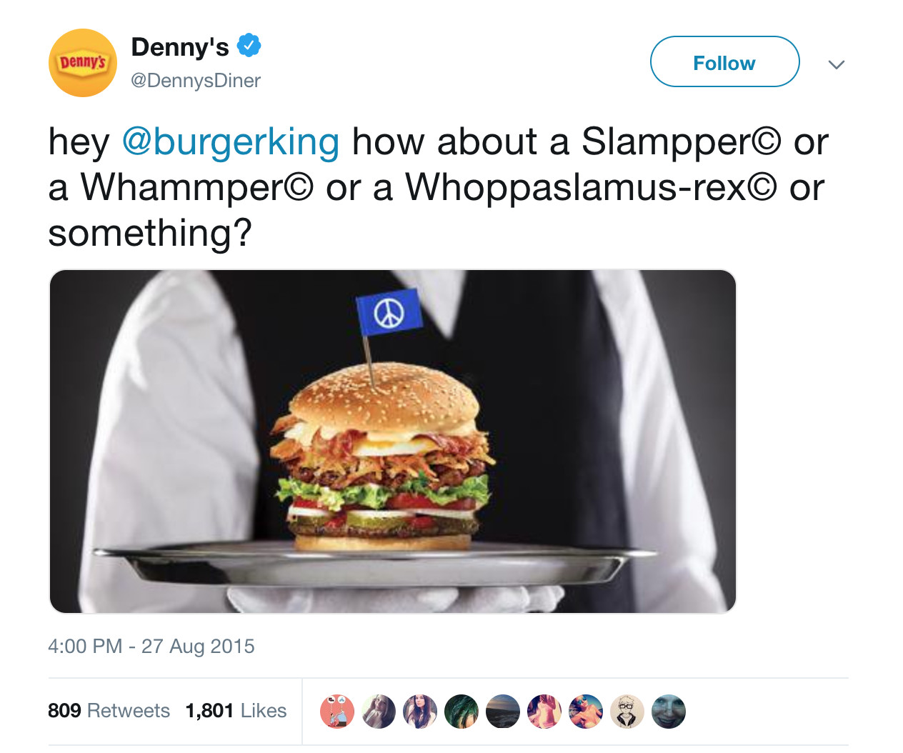 最后的同为快餐品牌Denny's给了汉堡王台阶下,邀请汉堡王一起开发合作产品,还一本正经的拍了视频(考虑到一篇文章仅能放3个视频,请自行去资料合集翻阅)。