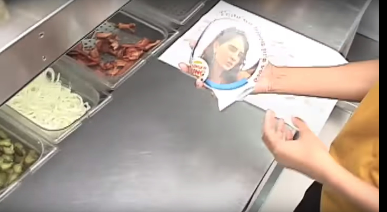 紧接着,店员们出场了。对于顾客下单的 Whopper Jr.(小皇堡),店员趁着没人注意,对着汉堡就是一拳,再若无其事地将汉堡包装好交给顾客。