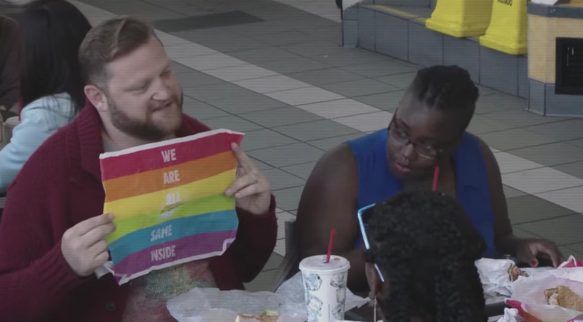 最近,针对这个问题汉堡王做了一个人性小测试,但实验的结果似乎并不令人满意。故事发生在美国一个汉堡门店里,几名小演员扮作学生模样,在餐厅里打闹,一个叫 Jr. 的孩子成为了同伴们欺负的对象。店里有不少顾客看到了这一幕,但并没有人对此有所表示。