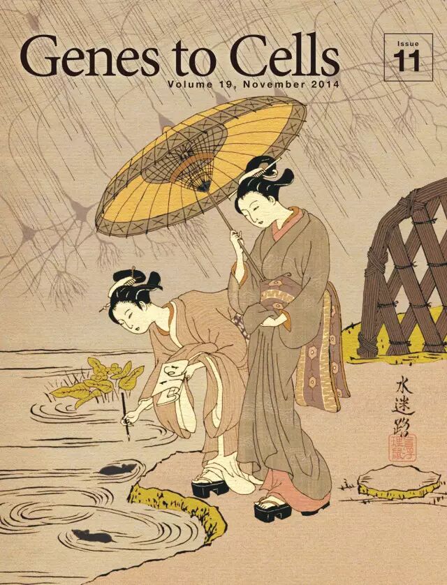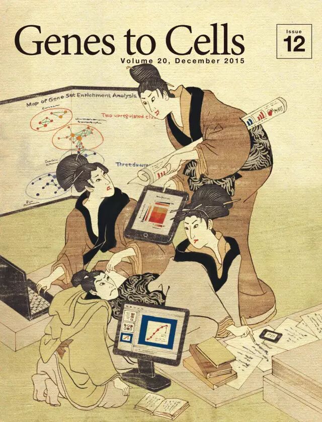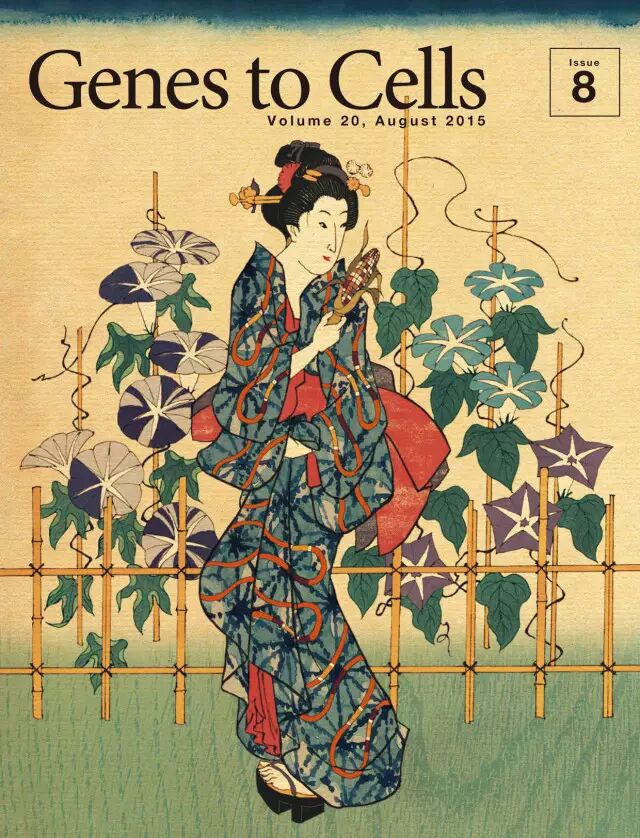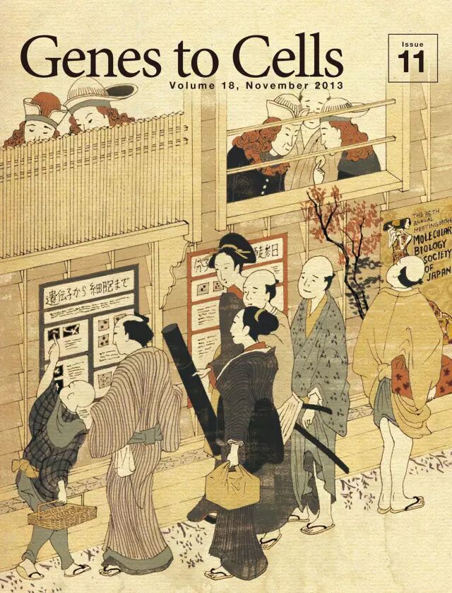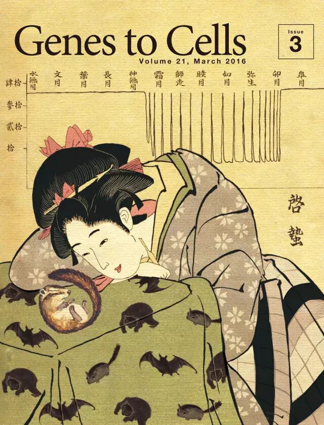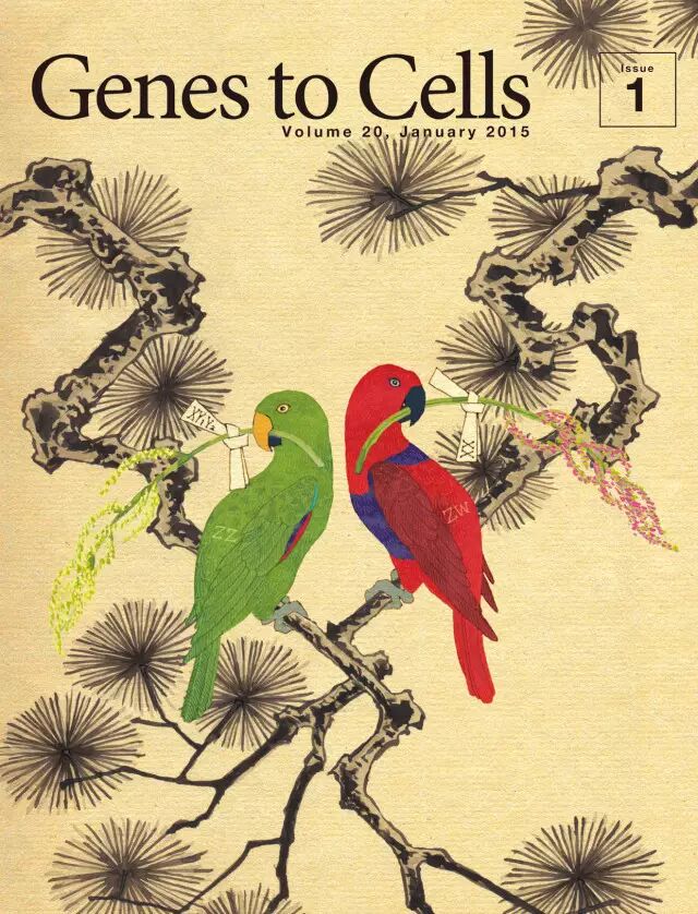 来源:大美科学 《Genes to Cells(基因到细胞)》是日本分子生物学会主办的科学杂志,尽管它的影响没有Science、Nature那么广,但其封面非常有特色,充满了一种“我就是和别人与众不同”的小清新。 它的封面充满了日本艺术特色,有时还会选取浮世绘作为主题,相当有特点,难怪看过封面的人都惊呼:这看起来明明就是一本艺术杂志嘛。 现在我就带你来一饱眼福(图片的说明文字来自Genes to Cells官网的封面介绍)。 按照日本古老的“阴阳历”,五月是鸢尾花在水边盛开的季节。在这座花园的池塘里,目之所及是一片片的紫色鸢尾。 不过,看仔细了!眼前这些花朵可都是由α螺旋和β折叠组成的哦! 一个典型的α-螺旋 α-螺旋(α-helix):蛋白质中常见的二级结构,肽链主链绕假想的中心轴盘绕成螺旋状,一般都是右手螺旋结构,螺旋是靠链内氢键维持的。 一个典型的β-折叠 β-折叠(β-sheet):是蛋白质的二级结构,肽键平面折叠成锯齿状。 2017年4月刊 今天的日本,估计有四分之一以上的人口患有日本雪松花粉过敏病。对这些过敏人群来说,春季应该是最糟糕的季节了。 肥大细胞表面的免疫球蛋白E与过敏原相结合,触发了组胺的释放,于是引发了诸如眼痒、流涕等症状。 但是,不仅人类有这个问题,这只做表演的猴子也有花粉过敏,而今天的舞台旁边,正是无所不在的雪松树。 雪松花粉过敏症:这种花粉过敏是由日本雪松引起的,它使人和动物鼻涕不断、眼睛发痒、喷嚏连天。美好的春天因此成为10%的日本国民即1300万人以及及猴子、狗等动物痛苦的时刻。 2017年3月刊 我们找到一枝盛开的梅花。为了呈现最好的花朵外观,我们把它放在一个金属盘前面,盘子上有一个出芽的酵母菌株已经被划线了。 由于菌株有ADE2基因突变并携带含有ADE2基因的质粒,由于质粒损失,中等数量的菌落变成了深粉红色,分散在培养基上。结果我们看到了一张有初升满月衬托的完美的梅花图。 在雪中散步的同卵双胞胎姐妹同撑一把伞。她们虽有相同的基因型,看起来却有着不同的个性和品味,这一点从俩人所穿的和服就能看出端倪。 有人指出,表观基因组的差异会导致此类个性差异。印在她们袖带上的数据是通过亚硫酸氢盐测序的方法获取的,显示了她们在基因组某个位点的甲基化模式。这些数据表明她们之间存在着表观遗传学差异。 那么,表观遗传学与假定的遗传特征或疾病之间有何关系呢?如果我们研究有一人患病的同卵双胞胎,就会对上述关系有更多的了解。 2016年3月刊 春天是万物复苏的季节。即使在哺乳动物中,有些松鼠、熊和蝙蝠也会冬眠。封面中的女人正在研究一只冬眠的西伯利亚花栗鼠。 正如图中所示,花栗鼠在冬眠时,体温首先下降到接近环境温度,然后会在10°C和37°C左右的两种状态中交替重复。我们希望生命科学能够揭示生命适应各种环境的机制。 2016年6月刊 在各种表现型中,数量性状通常由许多染色体位点以复杂的方式引发,而用狗进行的研究已经取得了丰硕的成果。 许多犬只品种是由人类选育的。不同品种之间的形态特征变化很大,但同一品种则全都一样。全基因组关联研究已经开展,这些研究结合了从各种犬只品种获得的颅脑数据,而且可能影响颅骨形态的数量性状基因座也已被确认。 其中一个数量性状座位在Ch.32的BMP3基因附近,这表明大多数短头的犬只品种在BMP3基因中有常见的错义突变。 2016年12月刊 一名女子正在使用电动吸量器来配制试剂。她身着时尚的和服,服装图案是用毛笔书写的文字。 设计这些文字可不仅仅是为了时尚,实际上它们都是试剂的配方(氯化钠、葡萄糖、氨基酸、乙酸等)。这真可谓一石二鸟,无疑有助于她在忙碌的年底精确地进行实验。 2015年8月刊 1948年,Barbara McClintock在玉米中发现了转座子(亦称转座元件),这是一类可在基因组中移动位置的DNA序列。 转座基因的移位能在宿主基因组中引入突变。实际上,转座基因和江户时代的文化有着令人吃惊的密切关系。在江户时代末期,发生基因突变的日本牵牛花开始被广泛种植。事实上,许多突变都是由转座子引起的。这些突变的牵牛花已被研究人员收集,目前由九州大学主导的小组负责维护。 芭芭拉·麦克林托克名垂科学史册的是她在玉米中对可移动基因——转座基因(俗称“跳跃基因”)的研究。她是在遗传学研究领域第一位独立获得诺贝尔奖的女科学家,也是世界上第三位独立获诺贝尔奖的女科学家。 2016年10月刊 位点特异性DNA重组技术,例如FLP-FRP和Cre-lox系统已被应用于各种领域,包括马赛克分析或条件性基因敲除。我们甚至应用这一机制来修剪松树。当我们给松树发出一个信号时,一根树枝形成了环状,并在以深绿色松针为标记的特定位点被自动切割。 2016年11月刊 众所周知,许多动物的卵子在受精的那一刻,细胞内钙离子的浓度会显著增加,形成所谓的“受精钙波”。 这种钙波是由一种连锁反应引起的——被激活的磷脂酶C产生了1,4,5-三磷酸肌醇,从而引发钙离子从卵子表面附近的内质网中释放出来。 被释放的钙离子进一步诱发了内质网附近钙离子的释放。圆形山上的红叶层林尽染,像潮水一般从山顶倾泻而下,生动地模仿了钙波的意象。 2015年3月刊 馥郁芬芳的梅花是日本早春最重要的特征。 这个整洁的梅花园有一个独特的功能,它是动物细胞膜外侧的生动写照。地面代表了脂质分
