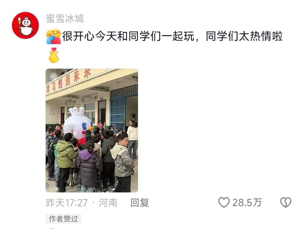 网友护短蜜雪冰城的原因 起因是乡村教师奖励男孩喝蜜雪冰城,男孩却把蜜雪冰城留给了姐姐…… 之后雪王给全校送来了奶茶、文具。他们都太暖了