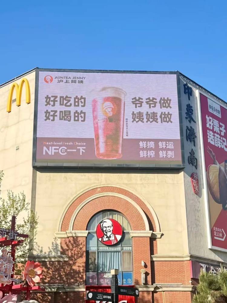 沪上阿姨×肯德基户外广告,很搭 好吃的,爷爷做 好喝的,姨姨做 旁边的麦当劳冷眼旁观这对冷门cp…
