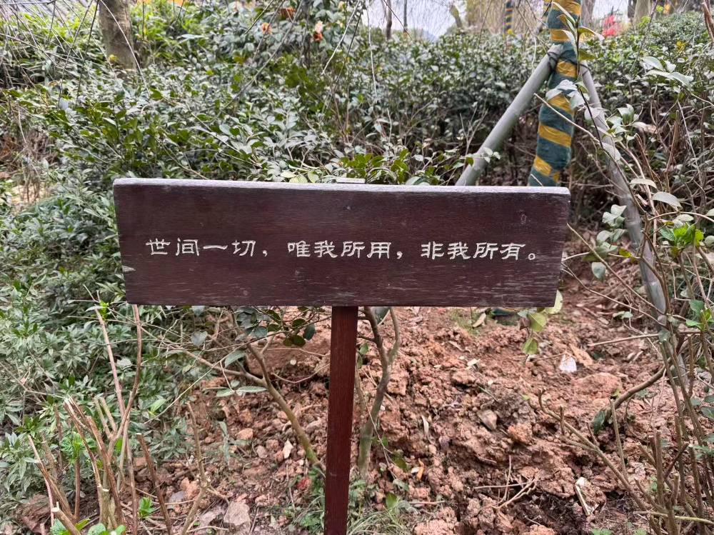 分享一些在永福寺看到的立牌。在草坪间稀松平常地立着,随处可见,很受启发。 “世间一切,为我所用,非我所有”,和苏轼那句是相通的——“惟江上之清风与山间之明月,耳得之而为声,目遇之而成色,取之不尽用之不竭,是造物者之无尽藏也。”