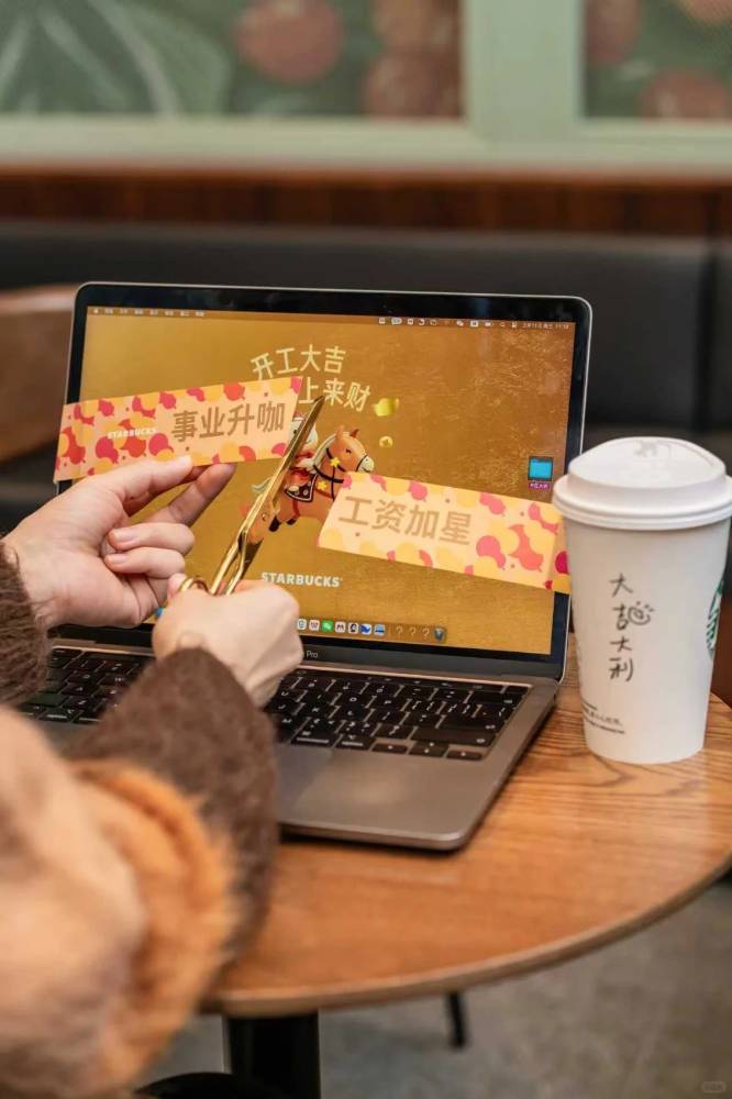 开工啦,星巴克的工位剪彩带怪有仪式感的。