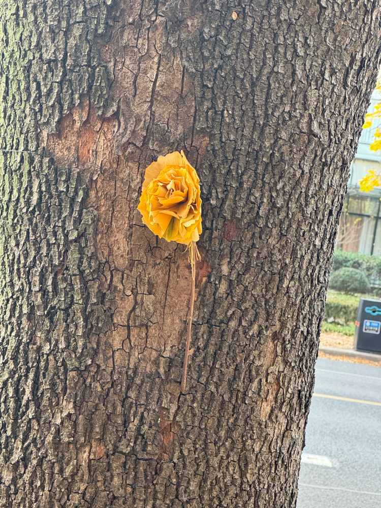 骑车路过看到的,树叶做的手捧花,那条街落叶也没扫。小红书还刷到了落叶做的灯球,何尝不是一种线下打卡经济?