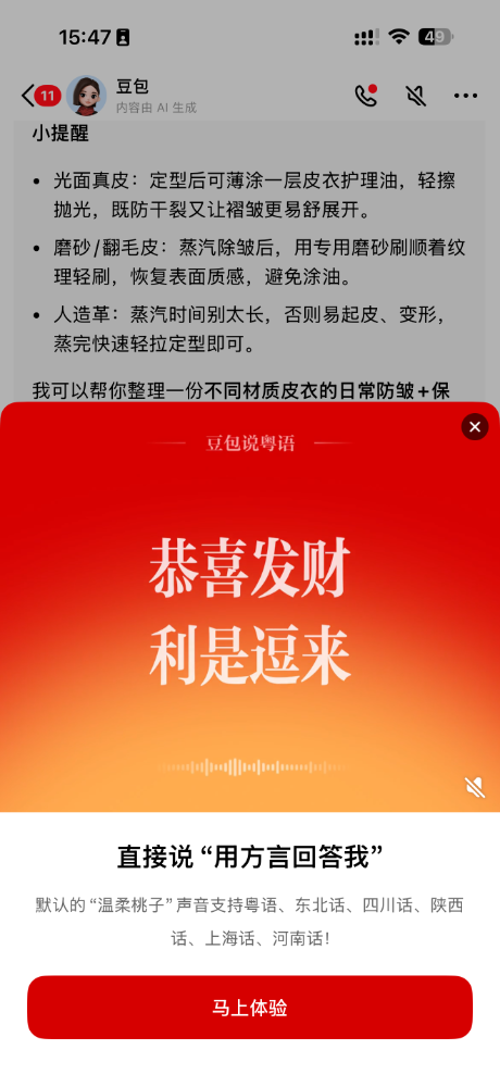 豆包方言版其实很早就有了,但在AI春节混战期间再拿出来重点宣传,很聪明。 我已经刷到了不少老人用方言与豆包对话的视频,抖音刻意推流可能是一方面,但要成为国民级AI应用,就是要让农村的爷爷奶奶都能轻松上手,满足这些日常、细微的使用需求。