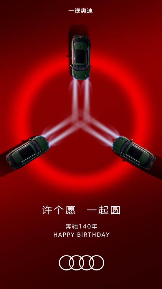 奔驰140周年,友商纷纷发出祝福海报 我宣布,一汽奥迪是最浪漫的 没有喧宾夺主,蛮高级
