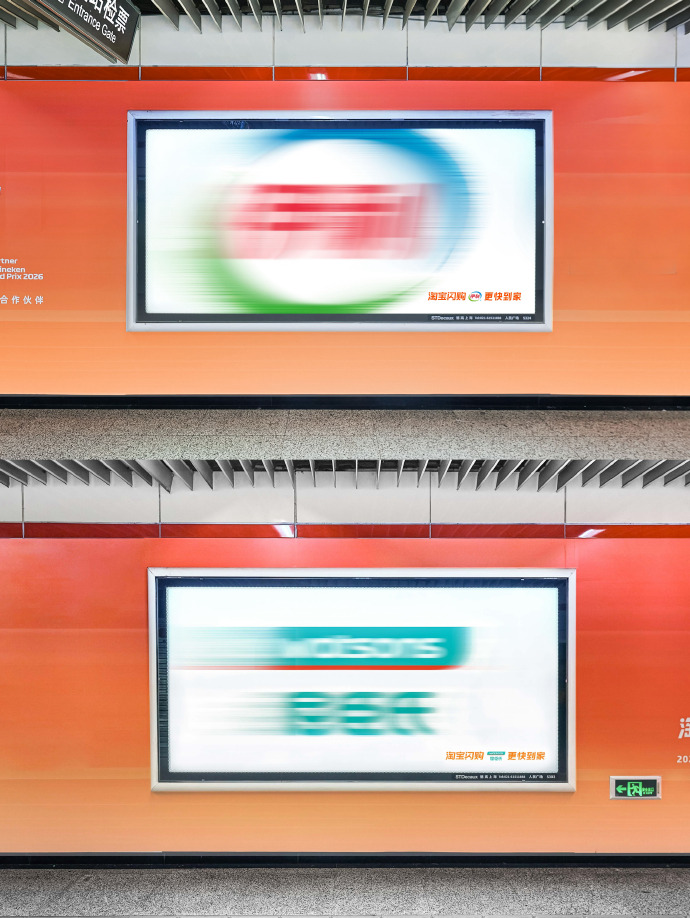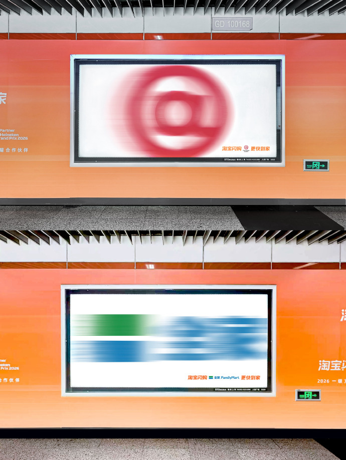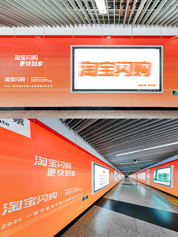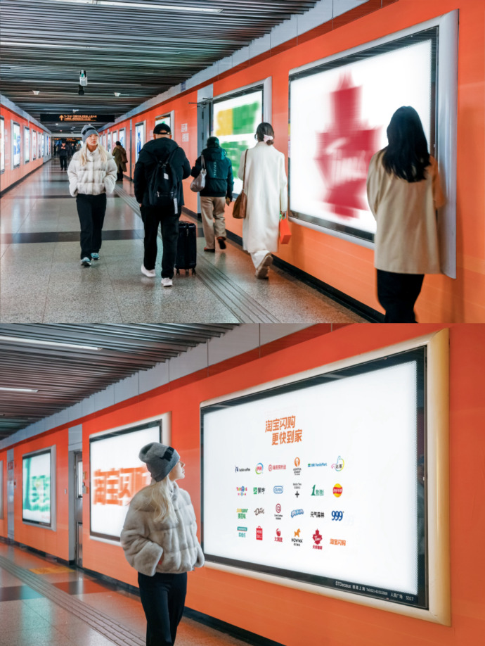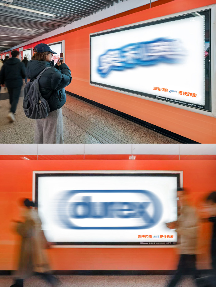 淘宝闪购在地铁站里放了一堆糊掉的logo