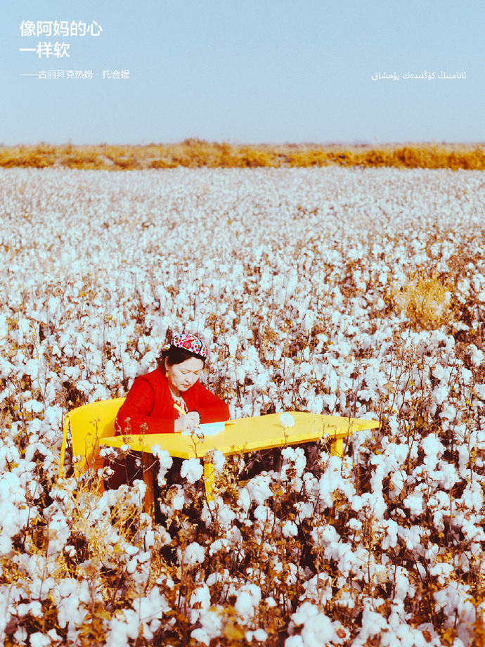 “晒过的棉花,有太阳味,做成衣服,能把冬天晒暖”