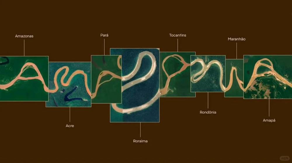直接提取了亚马逊蜿蜒25000公里的河道走势,将水系天然的线条弧度,融入“Amazonia”的字体里