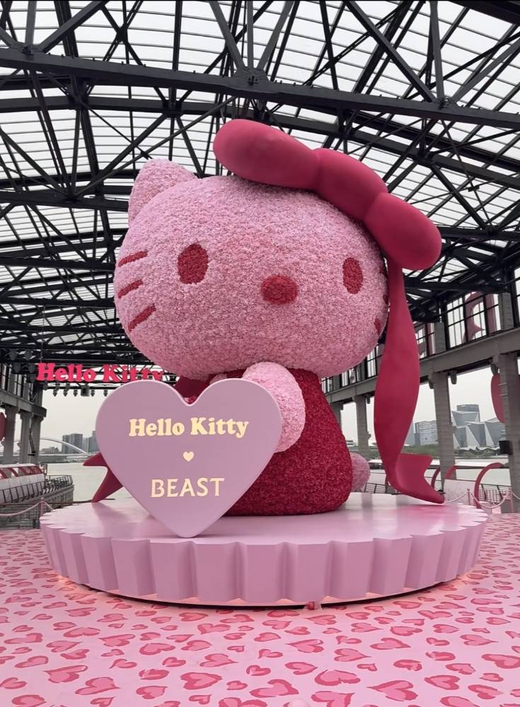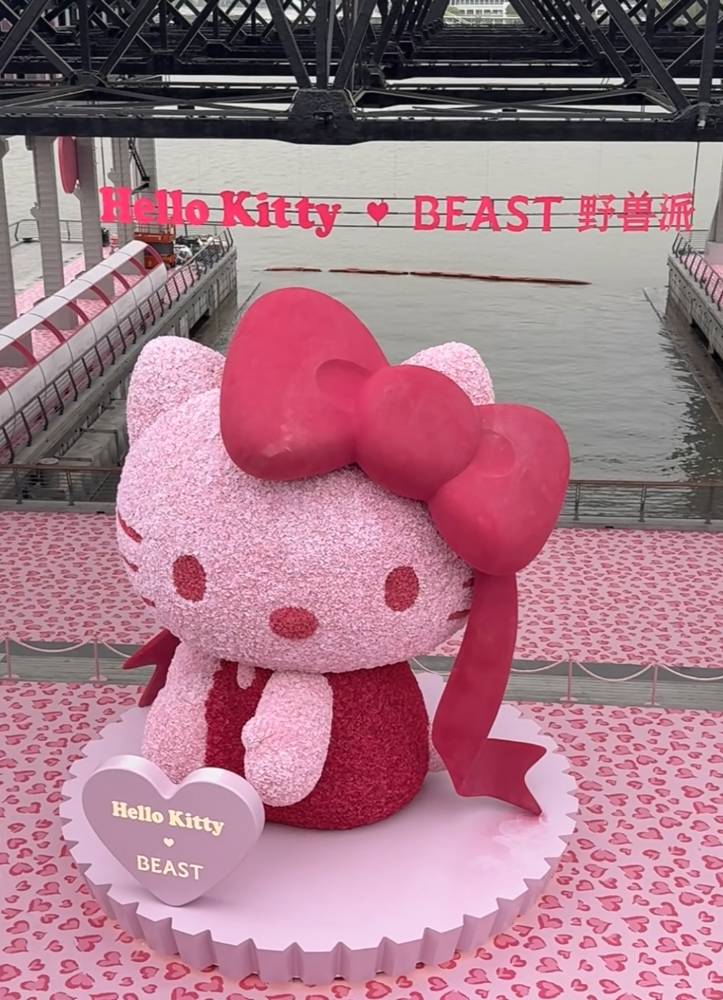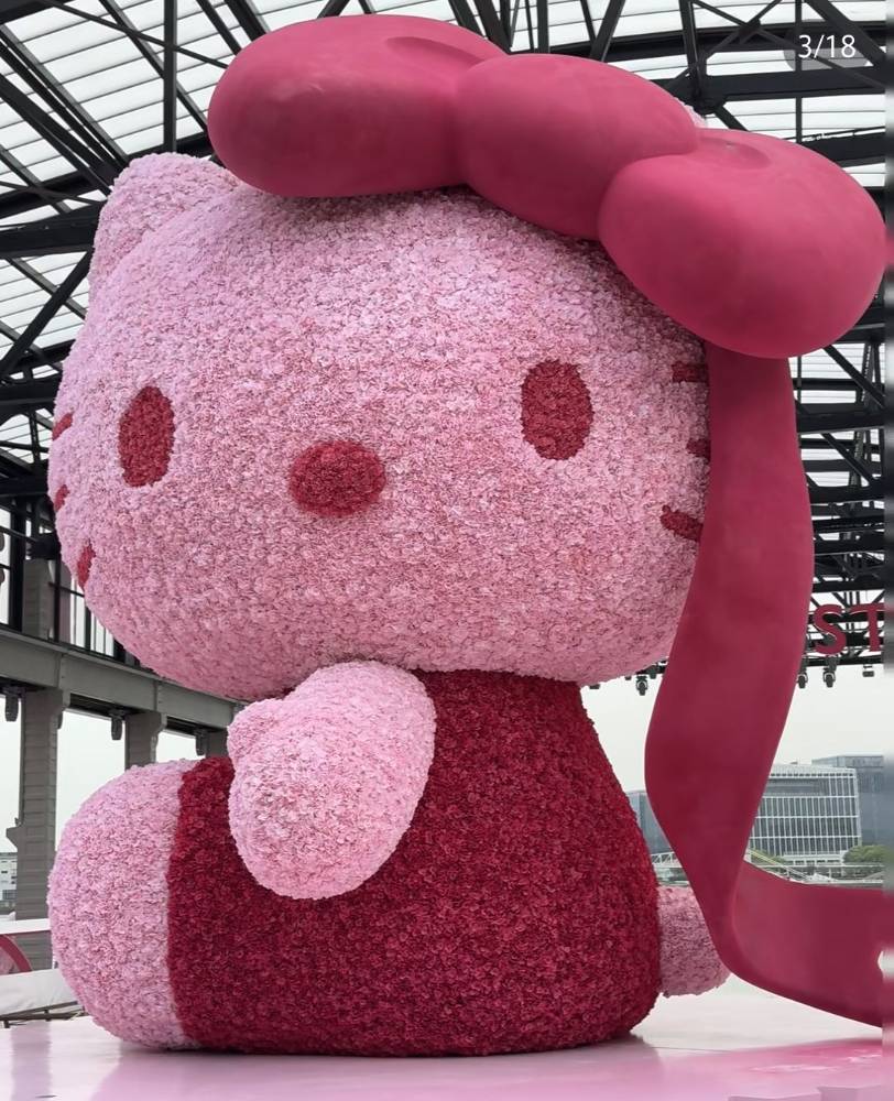 野兽派做了个7m高的粉色绣球花Hello Kitty!