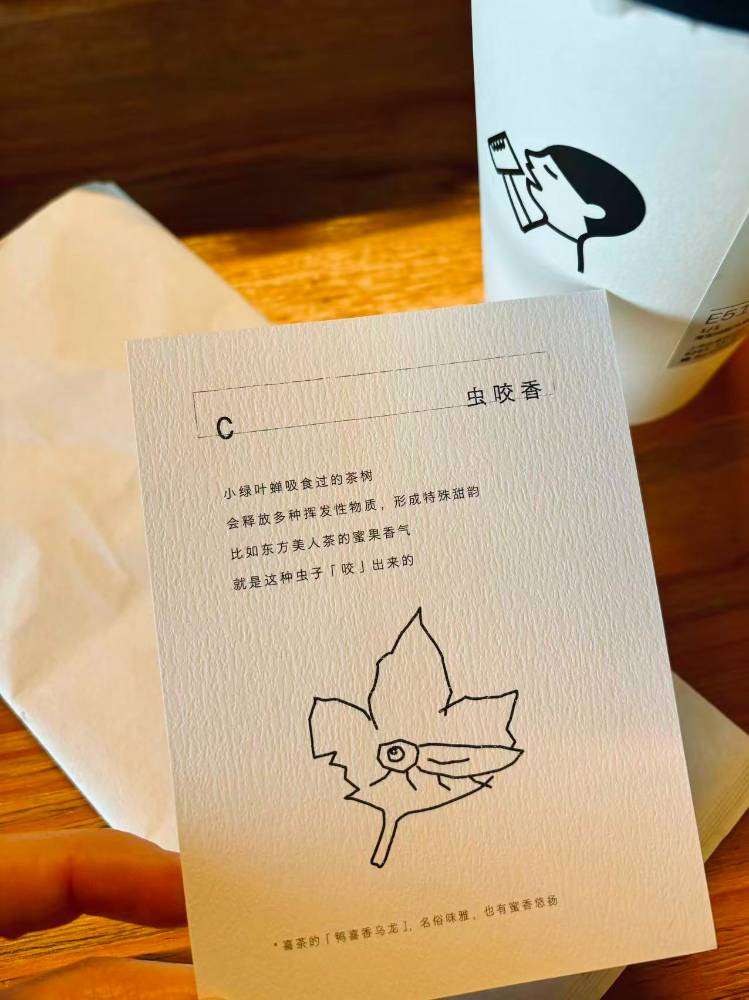 点了杯奶茶,附赠一个灵感小袋,掏出来有张科普小卡。