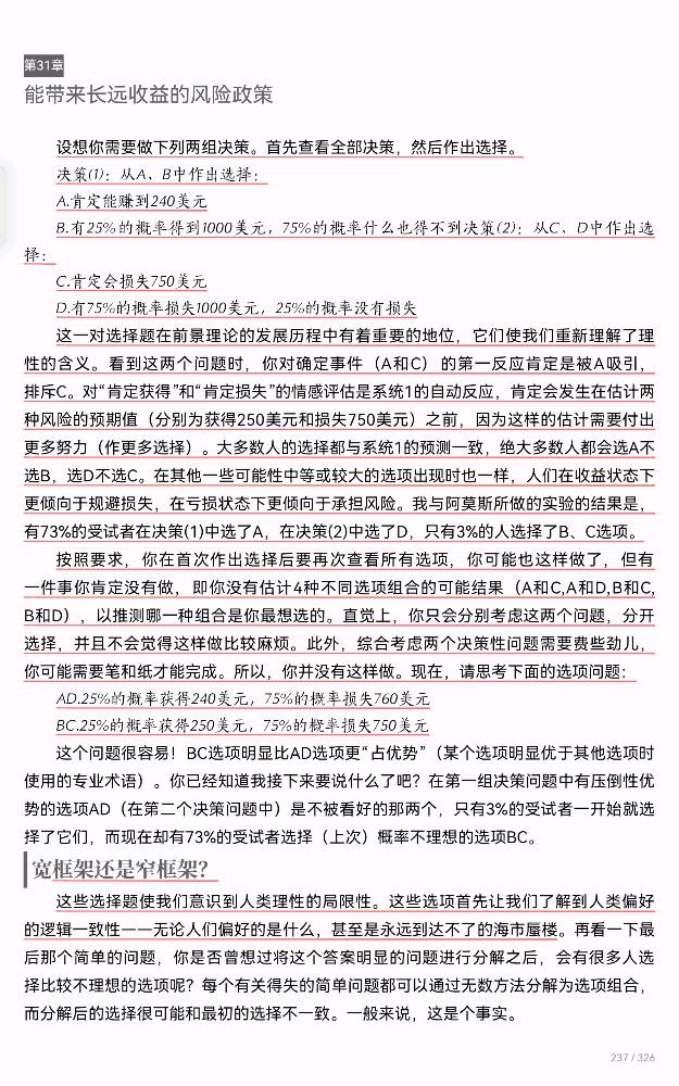 【每日一读-20250426-day.1163】人们对结果的重视程度和对结果可能性的重视程度不同。可能性和确定性在损失研究方面具有同样强大的效应。一个赌局的预期值即为其结果的平均值,而每个结果又要靠其可能性来权衡。你会形成一个总体评估,而在作这个评估时,你会对这个对象的特征加以权衡。... 展开