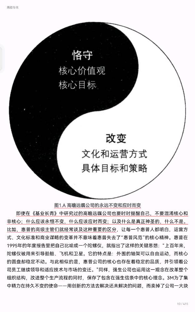 【每日一读-20250507-day.1166】一个全球性高瞻远瞩的公司会把经营方法和商业谋略与其核心价值观和核心使命分开。在不同的文化中经营时,经久不衰的伟大公司从不放弃它们的核心价值观和高要求的行为标准。高瞻远瞩公司,核心理念和一心一意追求进步的驱动力携手合作,驱动所有不属于核心理念的东西变化和进步。... 展开
