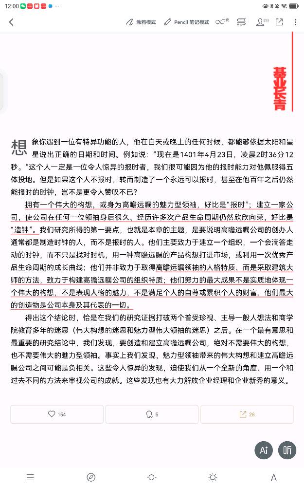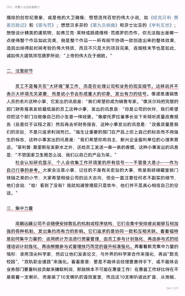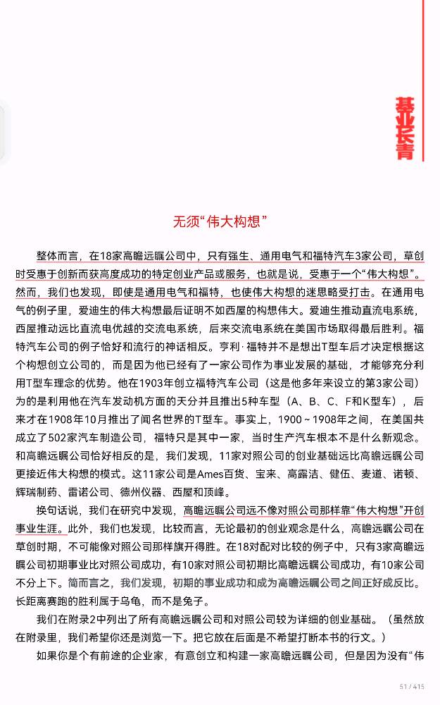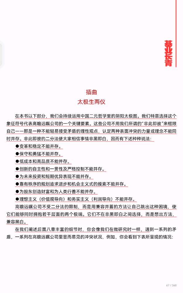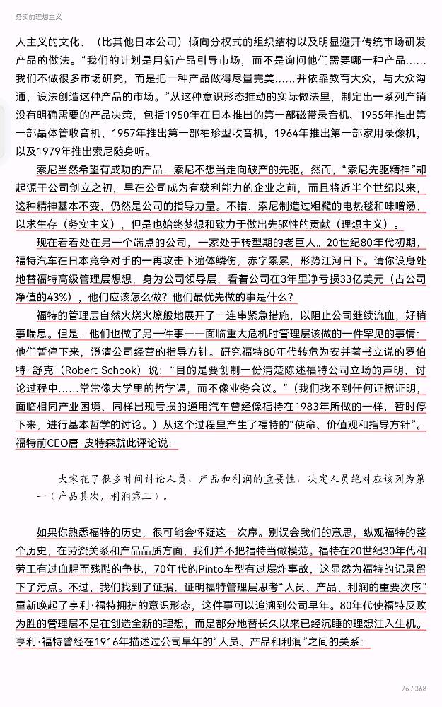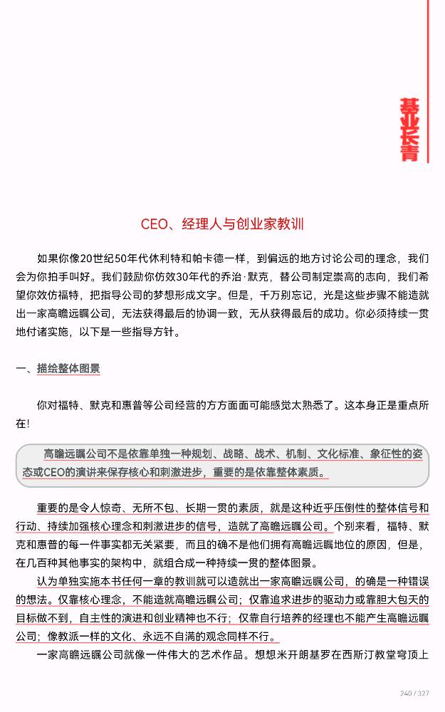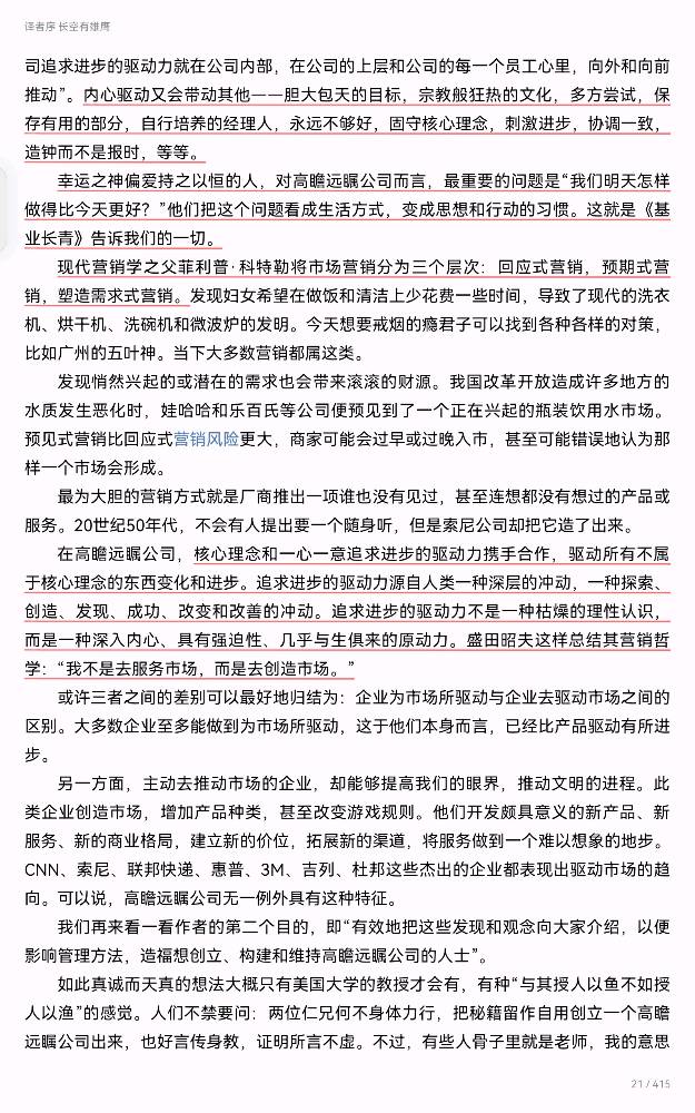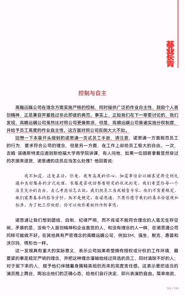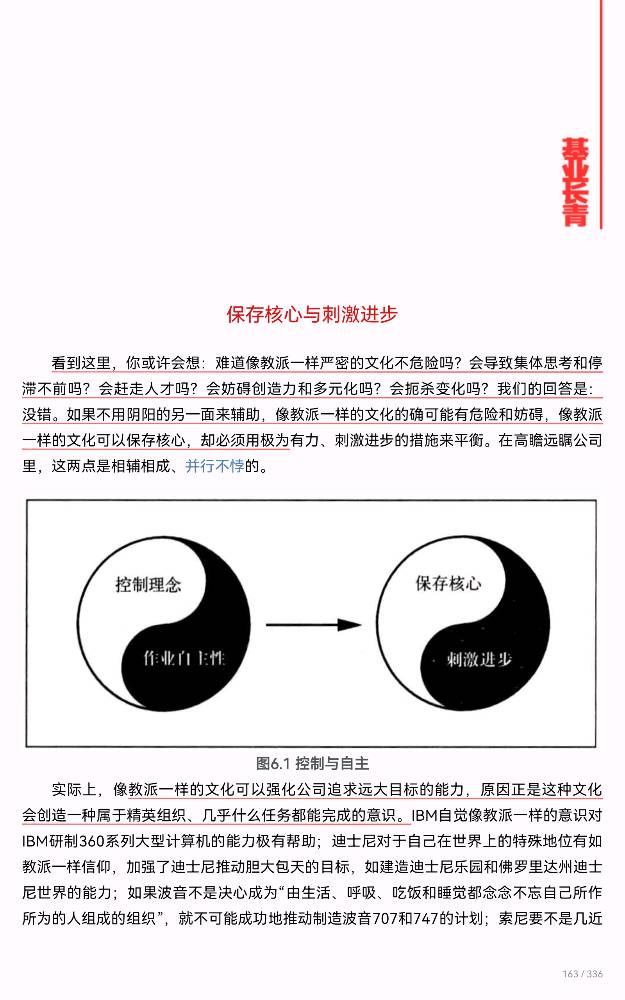 【每日一读-20250604-day.1170】“使命、价值观和指导方针”把人员和产品列在利润之前,而且强调改善质量、员工参与和顾客满意是重中之重。高瞻远瞩公司不是依靠单独一种规划、战略、战术、机制、文化标准、象征性的姿态或CEO的演讲来保存核心和刺激进步,重要的是依靠整体素质。追求愿景意味着实现组织和战略的协调,用以保存核心理念,刺激进步以实现展望中的未来。只有二者的协调才可以把梦想变为真实,把好的意愿变成具体的现实。... 展开
