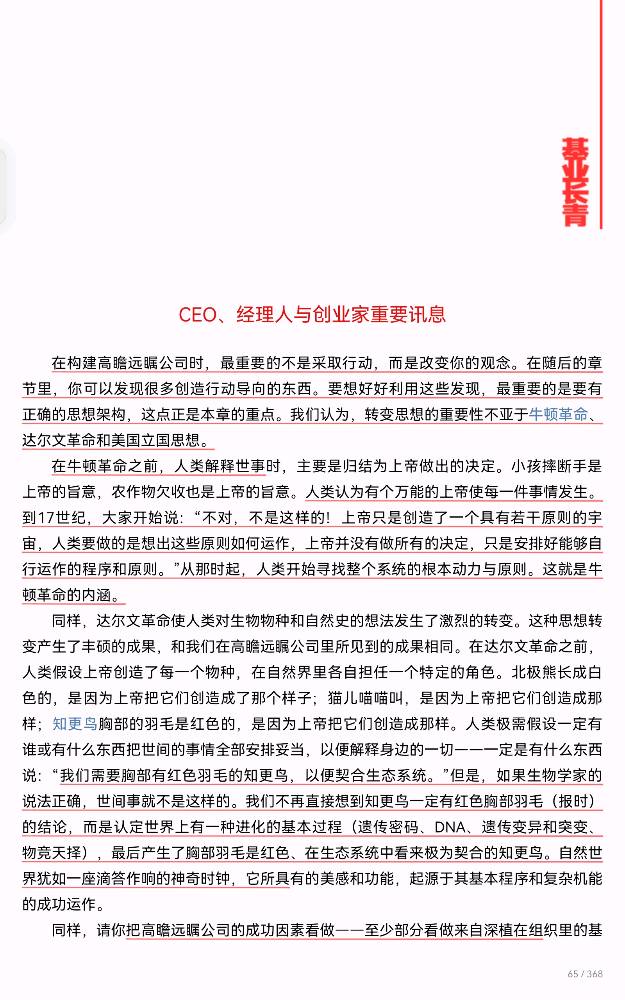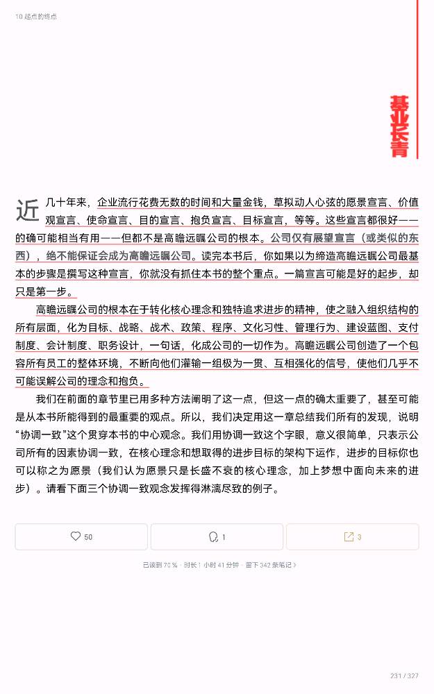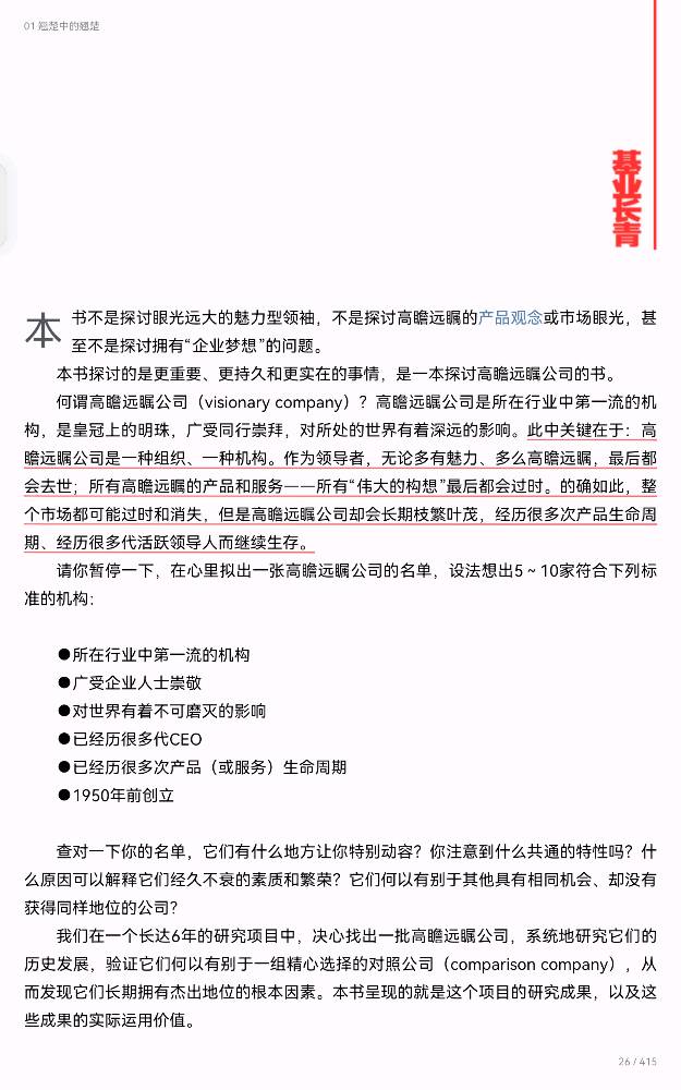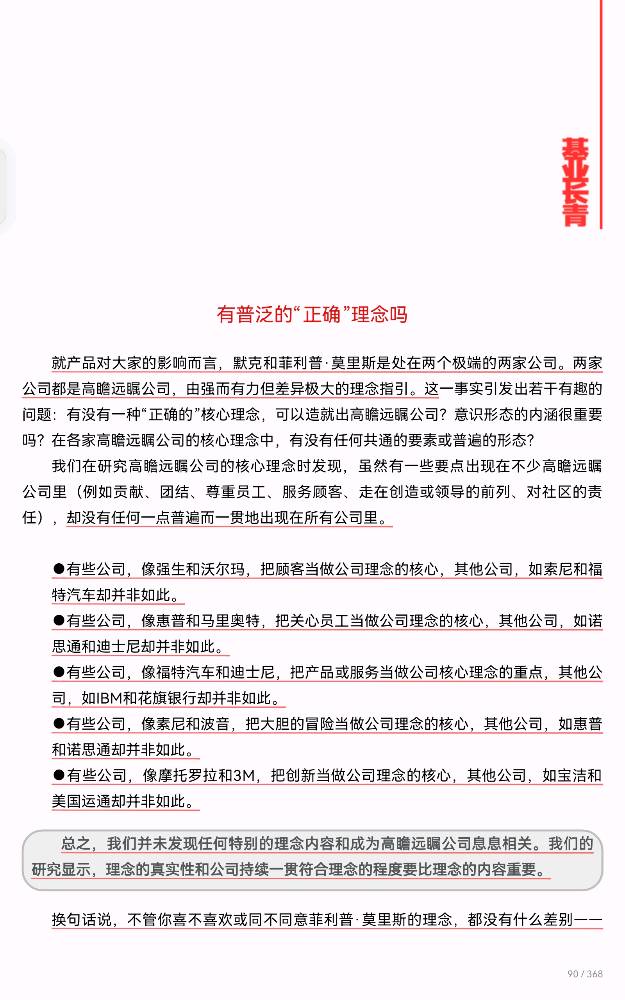 【每日一读-20250508-day.1167】在高瞻远瞩公司里,核心价值观不需要理性或外界的肯定,也不会随着当时的趋势和流行摇摆,甚至不会跟着市场情势的变化而改变。利润是生存的必要条件,而且是达成更重要目的的手段,但是对很多高瞻远瞩公司而言,利润不是目的,利润就像人体需要的氧气、食物、水和血液一样,这些东西不是生命的目的。但是,没有它们,就没有生命。... 展开