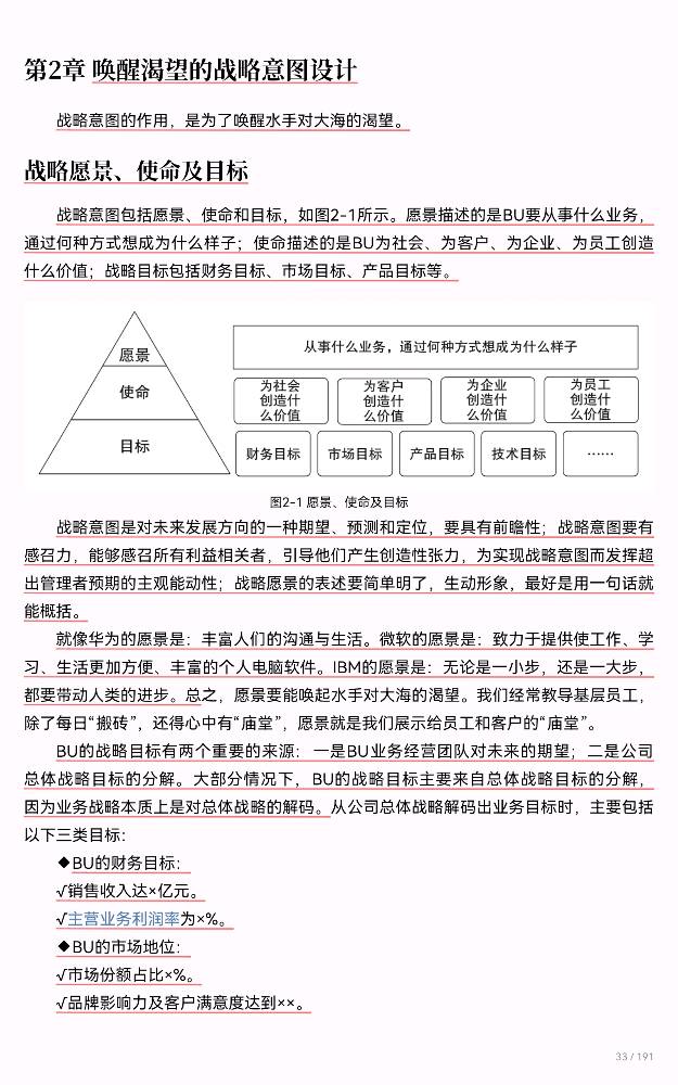 【每日一读-20250618-day.1172】业务战略规划的核心是业务模式设计。战略意图是对未来发展方向的一种期望、预测和定位,要具有前瞻性;战略意图要有感召力,能够感召所有利益相关者,引导他们产生创造性张力,为实现战略意图而发挥超出管理者预期的主观能动性;战略愿景的表述要简单明了,生动形象,最好是用一句话就能概括。战略的第一性原理是构建创造客户价值(市场成功)、企业价值(财务成功)且可持续的能力(持续成功)。... 展开