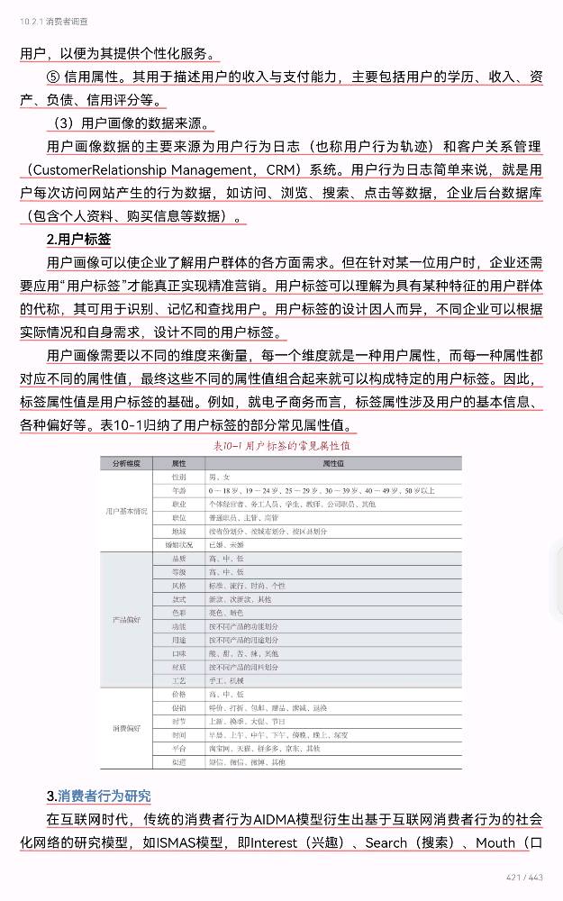 【每日一读-20250106-day.1115】用户画像是企业收集与分析用户的社会属性、生活习惯、消费行为等各方面信息的数据后,建立的抽象化的用户的商业特征。换句话说,用户画像就是企业从多个维度描述的用户特征。用户画像为企业提供了足够的信息基础,用户画像越精准、全面,越能帮助企业快速找到精准的用户群体、用户需求等更为广泛的反馈信息。统计分析是指对调查所得数据进行定量分析,提取有价值的信息,以揭示事物内在的数量关系规律和发展趋势。... 展开