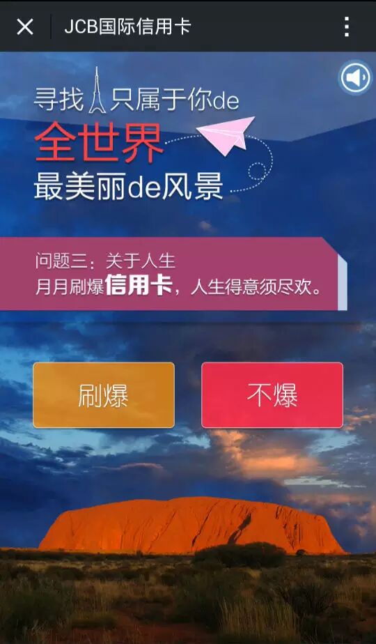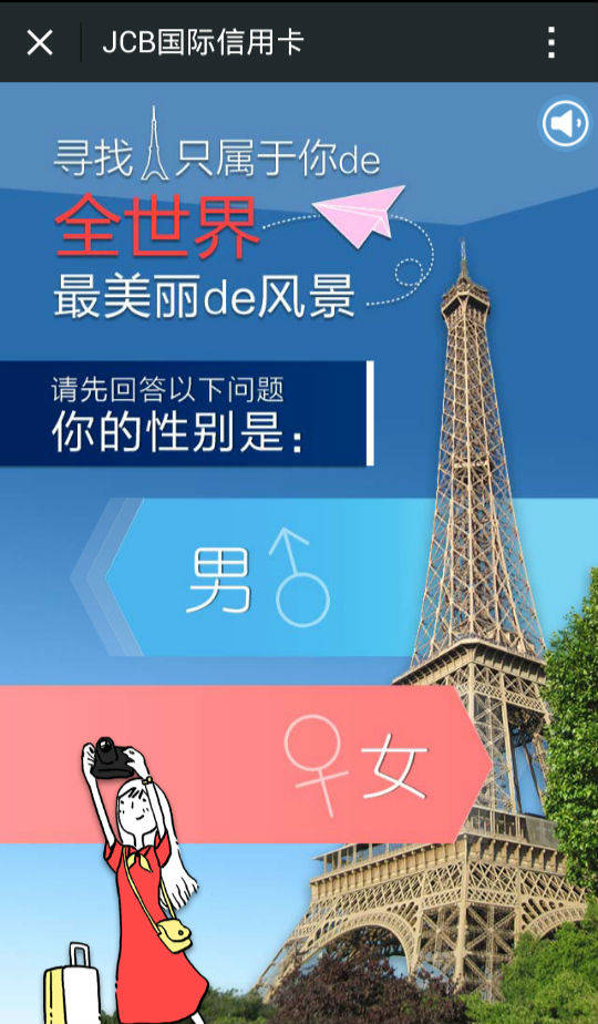 全球最大的信用卡服务商之一JCB信用卡在微信端推出一款《寻找全世界最美丽的风景》活动,引来无数惊叹。本活动一上线便以浓浓的甜蜜气息和小清新气质引来众多女用户的热捧。虽然现在JCB并没有公布他们的详细活动数据,但这并不妨碍我们解读这款活动,看看它到底有哪些独特之处。